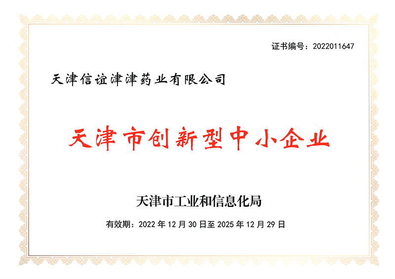 天津市創(chuàng)新性中小企業(yè)(2022.12.30-2025.12.29)